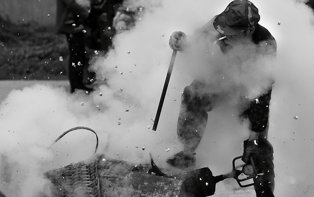 一個(gè)黑溜的鐵球,把米或玉米拌著糖精裝在球里面,一會(huì)兒工夫隨著蹦的一聲,想噴噴的爆米花就出來(lái)了,那時(shí)候這真是美味!?。。ìF(xiàn)在馬路邊還是能經(jīng)常見到的)