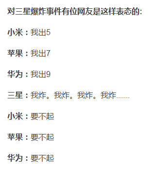 中國爆了幾部機(jī)卻說我們用微波爐加熱引爆的,各種理由不召回,還讓我們背黑鍋。美國炸了幾部機(jī)就全線召回。