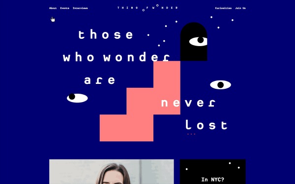 這不是某一種類別的導航,而是一系列的導航方式。往往用在作品集網站上,設計師可以天馬行空發(fā)揮創(chuàng)意。這種導航的特點往往是拋棄傳統(tǒng)導航,把導航欄里的條目拆分到頁面各處。角落往往是最受歡迎的。